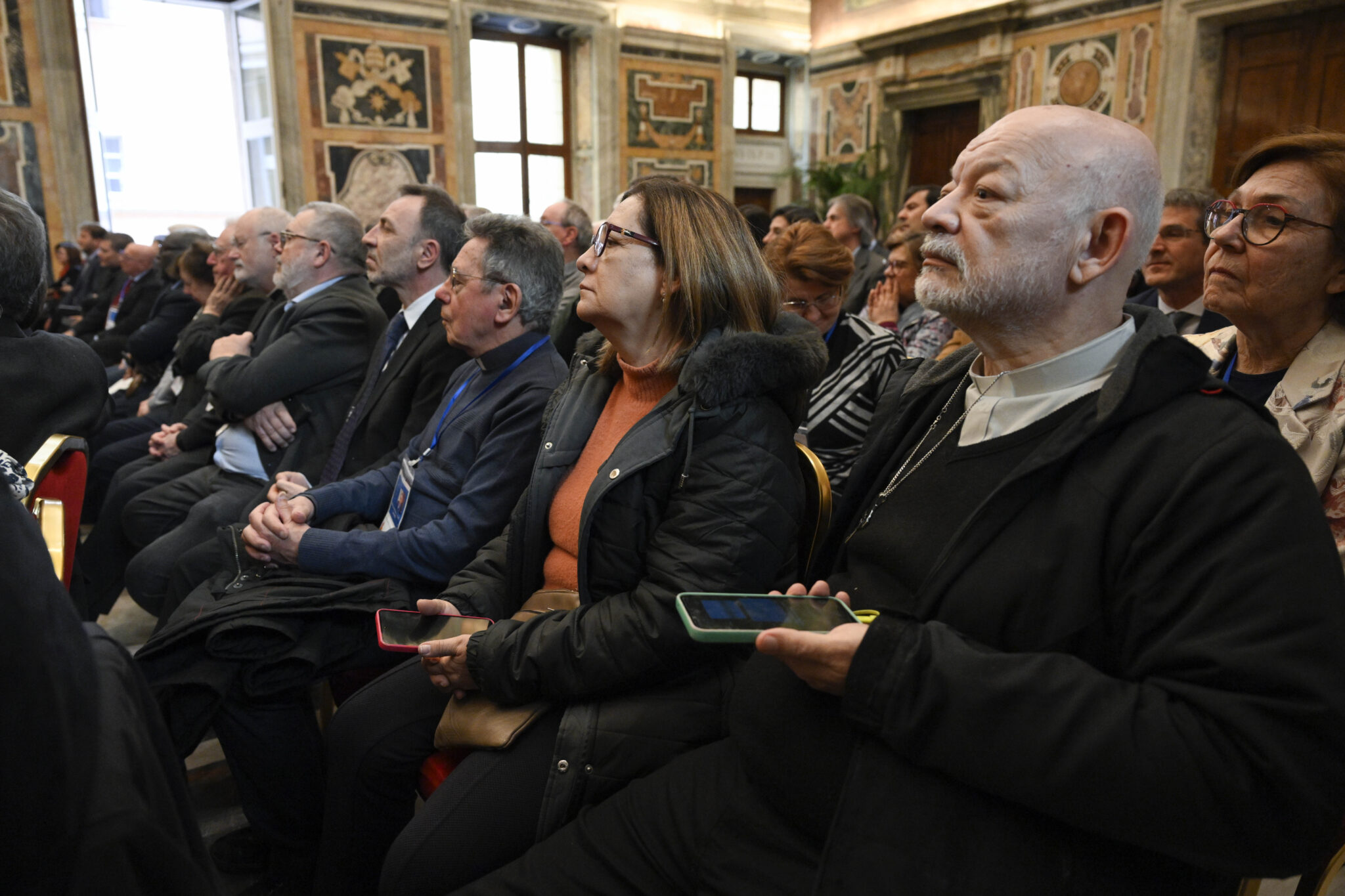 Un momento especialmente significativo, cuando se refirió al momento histórico que está atravesando el Movimiento. El Papa León XIV recordó: «a ustedes se les ha confiado la responsabilidad de mantener vivo el carisma de su Movimiento en la fase posfundacional», una fase que no termina con la generación inmediatamente posterior a la fundadora, sino que «se prolonga más allá». Invitó al Movimiento a distinguir con lucidez y honestidad lo que pertenece al núcleo esencial del carisma de lo que, con el tiempo, puede cambiar. Dijo con claridad que es necesario discernir «qué aspectos de su vida común y de su apostolado son esenciales, y por lo tanto deben mantenerse» y «qué instrumentos y prácticas, aunque usadas desde hace tiempo, no son esenciales para el carisma… o han presentado aspectos problemáticos y, por lo tanto, tienen que abandonarse».