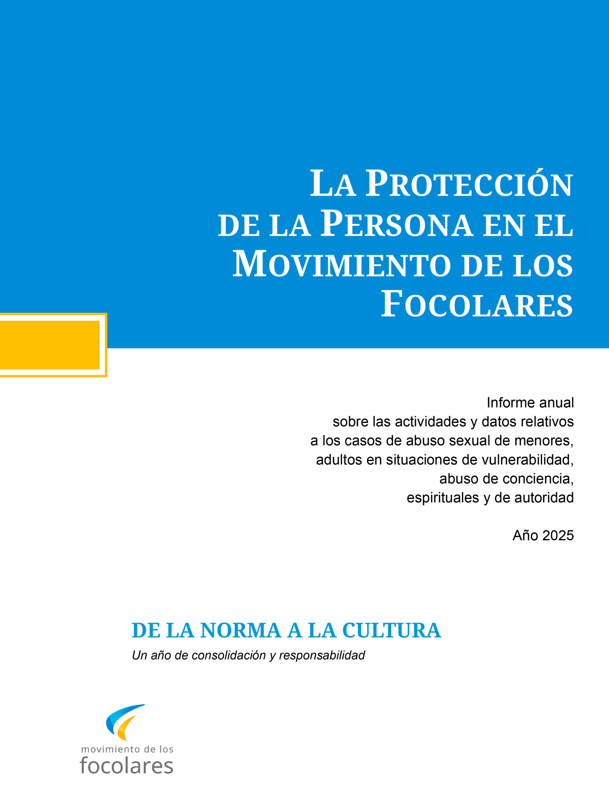 En el ámbito normativo, el Movimiento redactó y aprobó la Política para la Protección de las Personas en el Movimiento de los Focolares, que entró en vigor el 1º de enero de 2026. La Política recoge valores, responsabilidades y praxis, conecta protocolos y líneas guía, define normas de conducta, criterios para entornos seguros y una clara atención a las personas que han sufrido abusos, previendo la escucha, el acompañamiento y –en los casos establecidos– medidas de apoyo y reparación.
