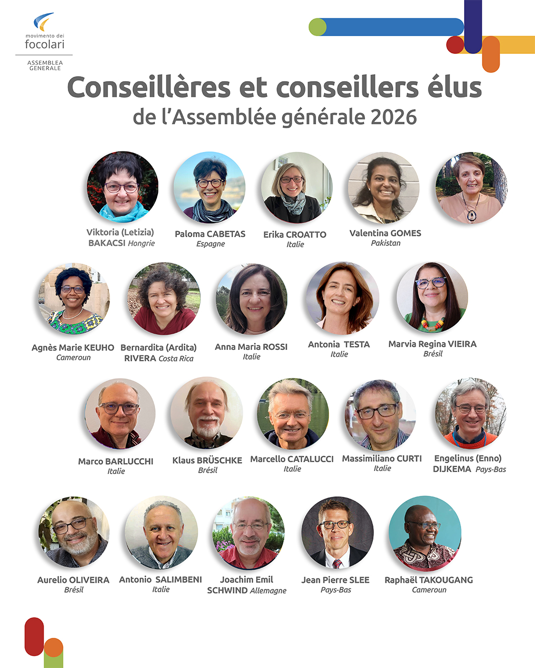 Les 10 conseillers généraux et les 10 conseillères générales du Mouvement des Focolari ont été élus aujourd’hui ; ils accompagneront la Présidente du Mouvement des Focolari au cours de son second mandat.