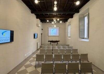 As salas e os espaços do Meeting Point dos Focolares Facciata-Facciata Ingresso Reception Reception2 Sala conferenze-40 posti Sala conferenze Sala conferenze-Impianto tecnico Chiessa – 80 posti Chiessa interno Madonna del Carmine Taverna3 Taverna-24 posti Taverna2 Ingresso Civico 4 Ascensore Sala Roma Sala San Giuseppe Sala San Giuseppe 2 Terrazo Terrazzo2 Terrazzo3 Sala multifunzione2 Sala multifunzione Sala multifunzione-dettaglio Cortile Sala Lanterna- Sala Orologgio Salatto passaggio